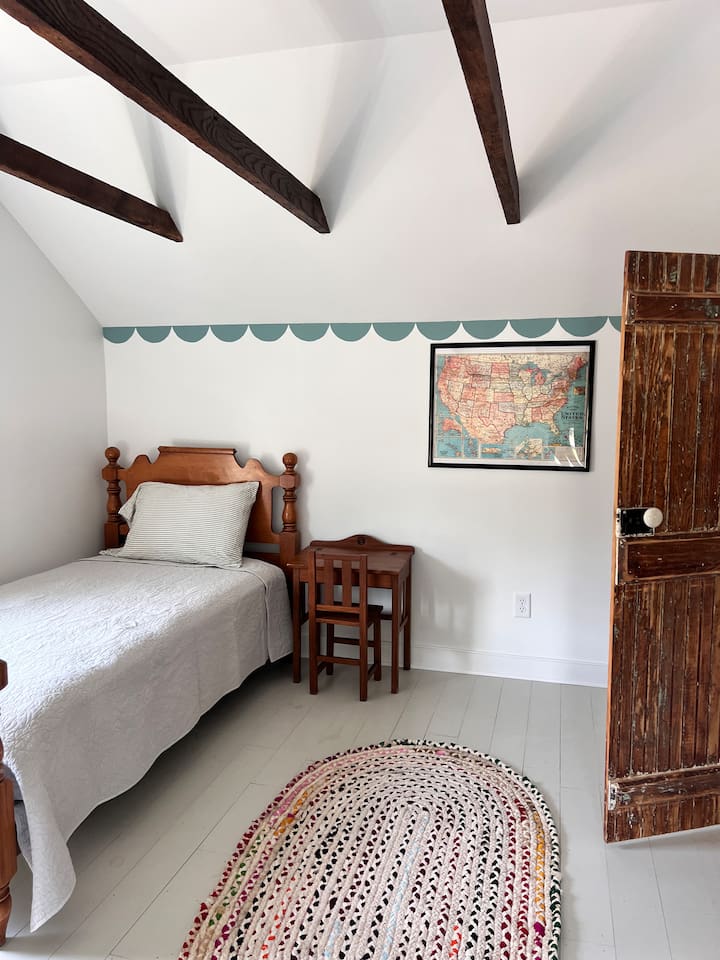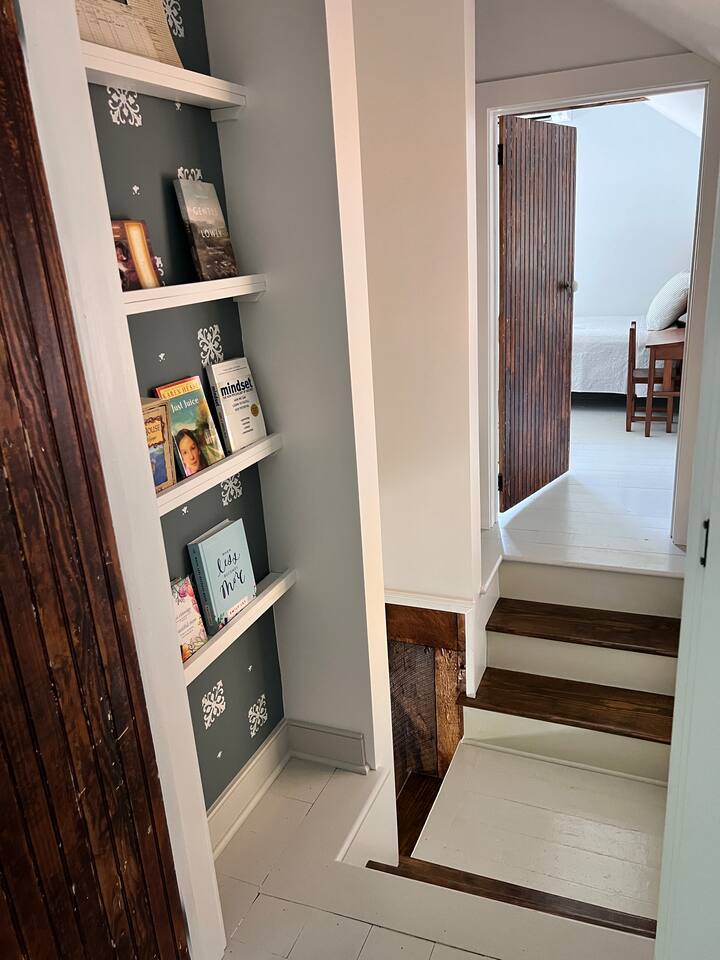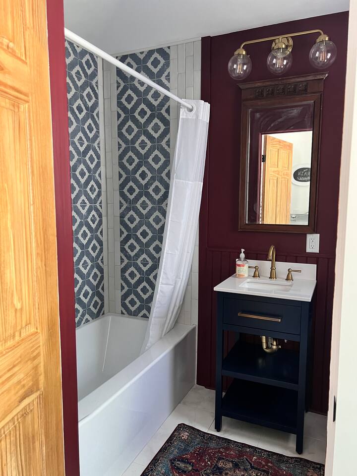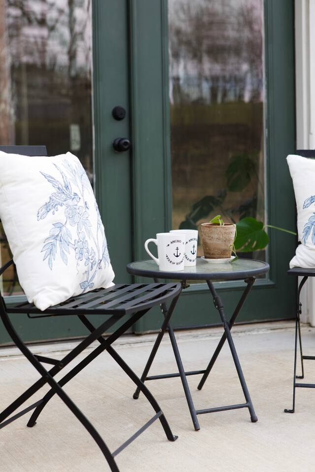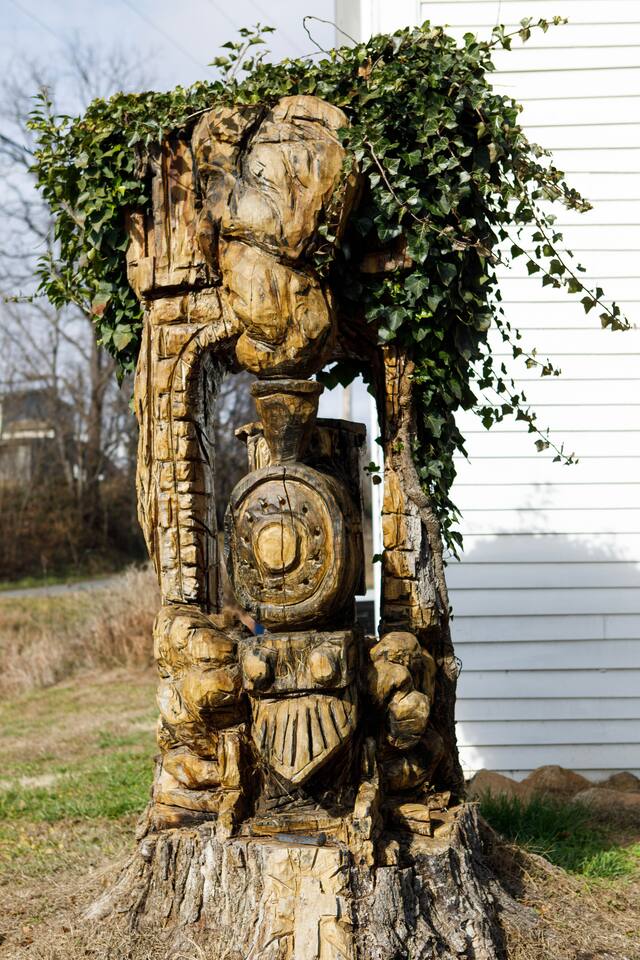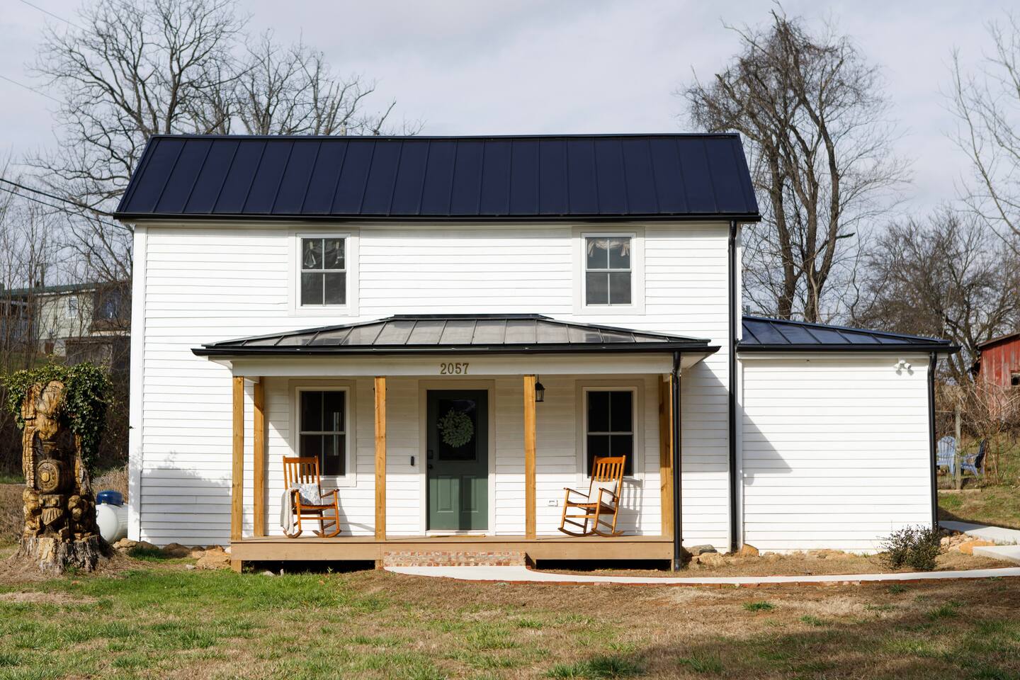 Rock on the front porch & look out onto the center of town where the train used to stop for people to get their groceries & go to the post office. Now this once abandoned home has been completely revitalized but wrapped in historic elegance for a comfortable, spacious stay. • 1,200 sq ft • high end Lg kitchen • train tree carving 🚂 • disc golf basket 🥏 • master suite w/double vanity & spa 🚿 • Frame tv • Pac-Man 👾🕹️ • Gas log fireplace & outdoor firepit • large driveway *goat visit by request