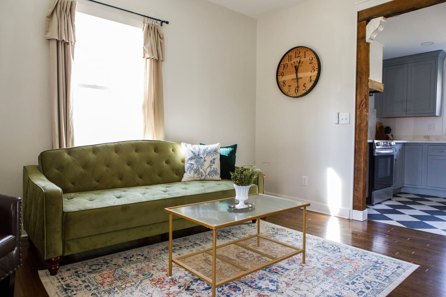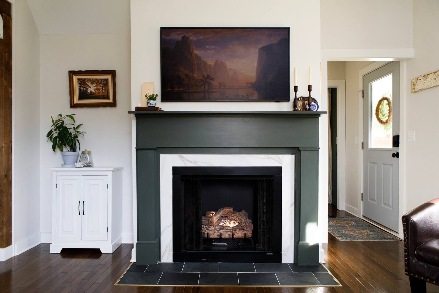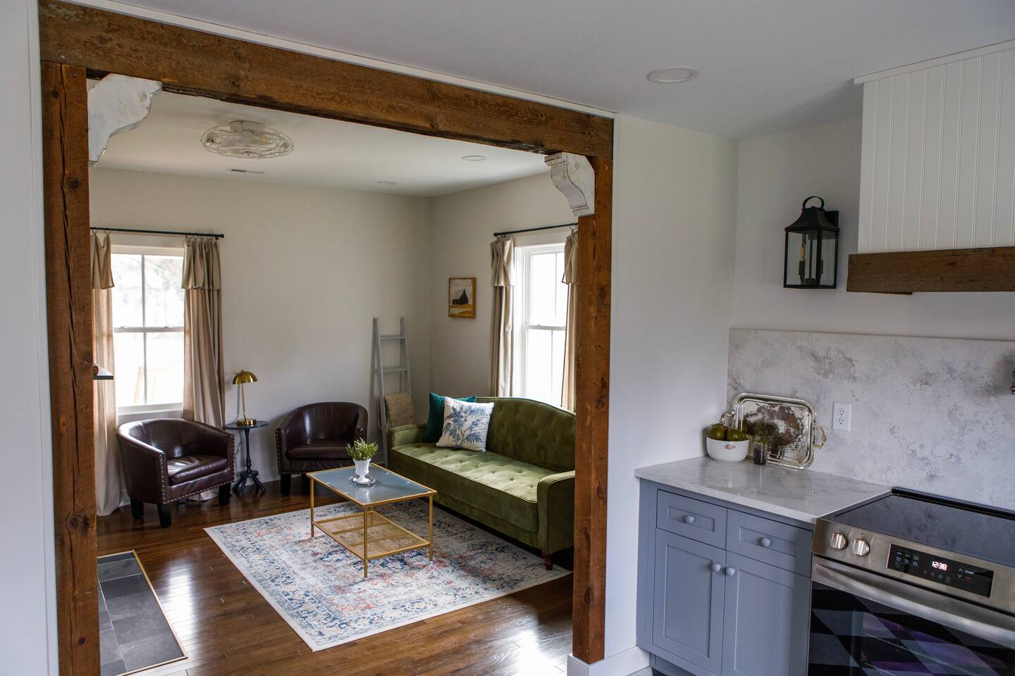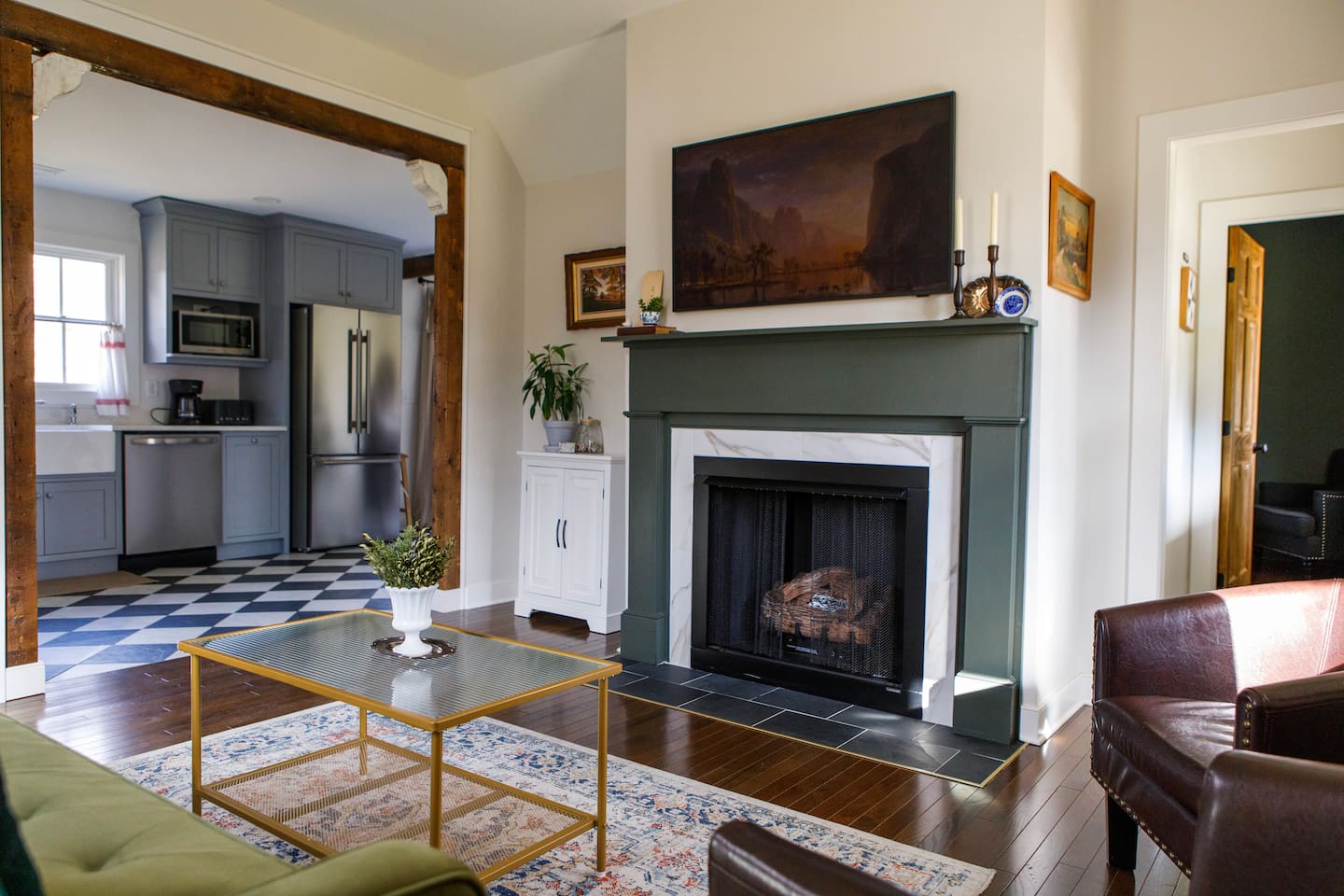 Rock on the front porch & look out onto the center of town where the train used to stop for people to get their groceries & go to the post office. Now this once abandoned home has been completely revitalized but wrapped in historic elegance for a comfortable, spacious stay. • 1,200 sq ft • high end Lg kitchen • train tree carving 🚂 • disc golf basket 🥏 • master suite w/double vanity & spa 🚿 • Frame tv • Pac-Man 👾🕹️ • Gas log fireplace & outdoor firepit • large driveway *goat visit by request