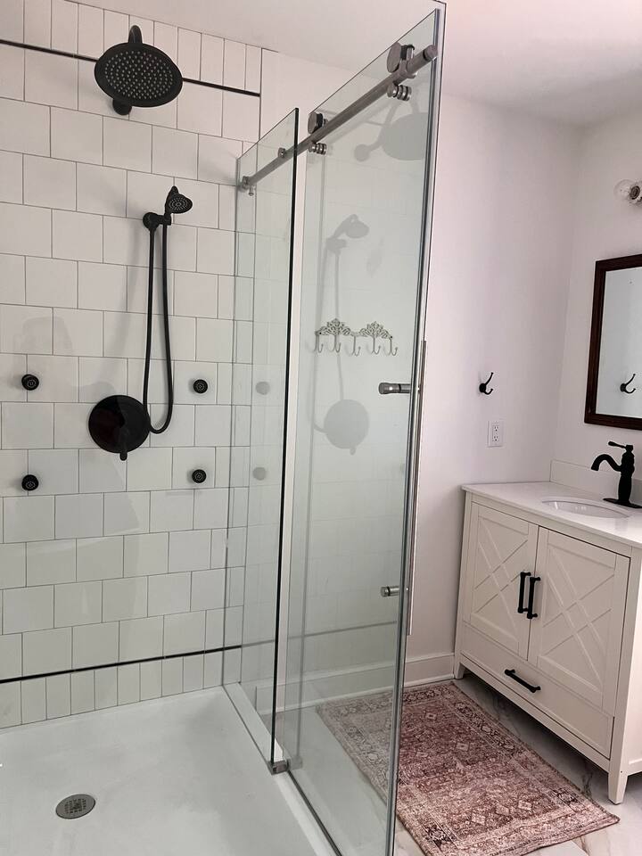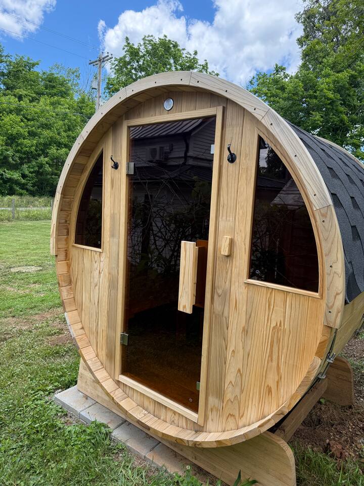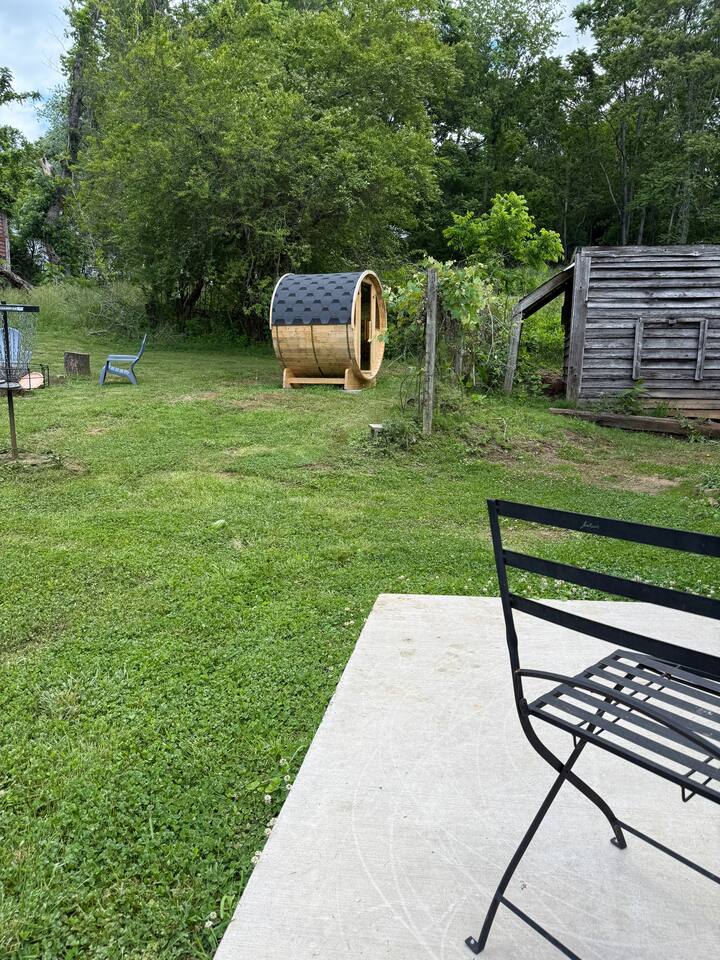The main floor features: • Master bedroom & private bathroom • Living room w/sleeper sofa • Fully equipped kitchen • Dining room w/french doors out to patio • Laundry room • Full bathroom • Blow up twin mattress in the master closet w/extra linens Upstairs includes: • Bedroom w/two twin beds & mini arcade game • Bedroom w/full size bed • Jack and Jill half bath. One extra toilet paper, dish soap, hand soap, a trash bag, and all purpose cleaning spray are provided. One towel set for each guest is provided. Firewood and grill available upon request. Sauna for up to 4 people in backyard. Turkish cotton towels for after sauna located in the laundry room. Nearby locations: Sierra Vista - 5min/3.3mi Cedar Oaks - 7min/5mi Glass Hill - 15min/7.2mi Liberty University - 23min/15mi Peaks of Otter - 24min/16mi